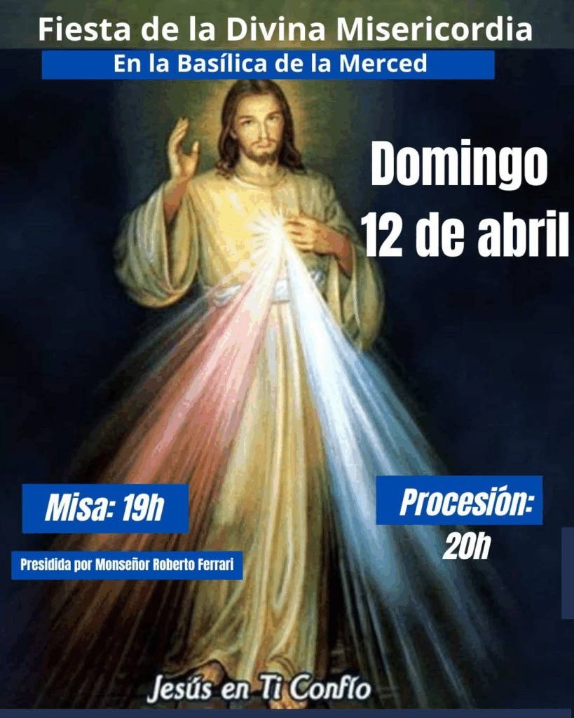 TUCUMÁN.- Este 12 de abril se celebra en todo el mundo la Fiesta de la Divina Misericordia. el tradicional festejo se realiza cada domingo siguiente a la Pascua de Resurrección. La fiesta fue propuesta por el Papa Juan Pablo II en el año 2000.
