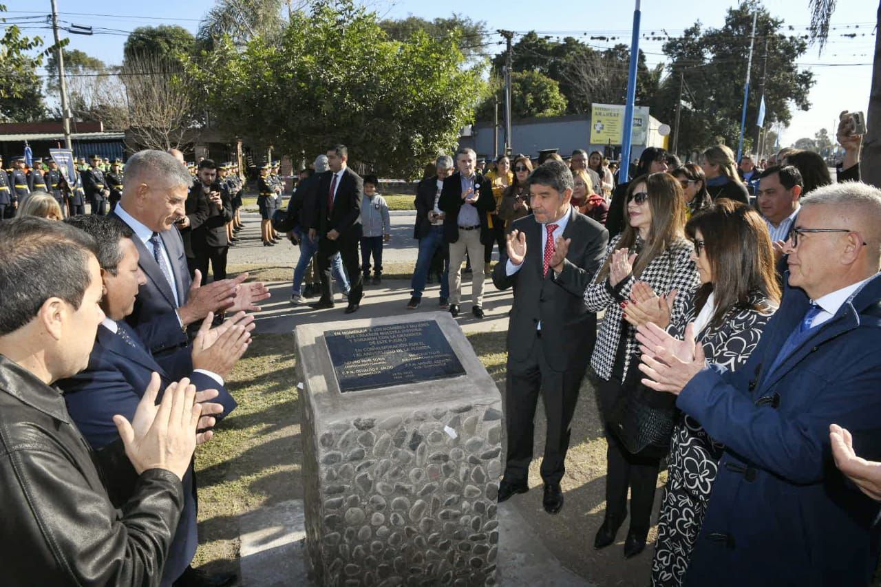 En la celebración, el párroco Gustavo Juárez realizó la bendición de la placa conmemorativa, y el comisario Marcelo Argañaraz, al frente de la agrupación 26 de Julio, encabezó un desfile seguido por diversas instituciones policiales, educativas y civiles de la zona.