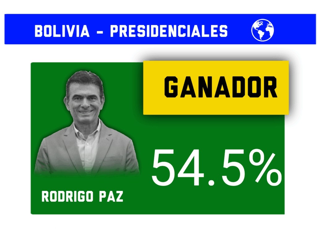 BOLIVIA.- Este domingo se realizó el ballotage para elegir el presidente de Bolivia, El escrutinio indica que resultó ganador Rodrigo Paz Pereira, con el 54,58% de los votos contra el 45,42% del derechista Jorge Quiroga.