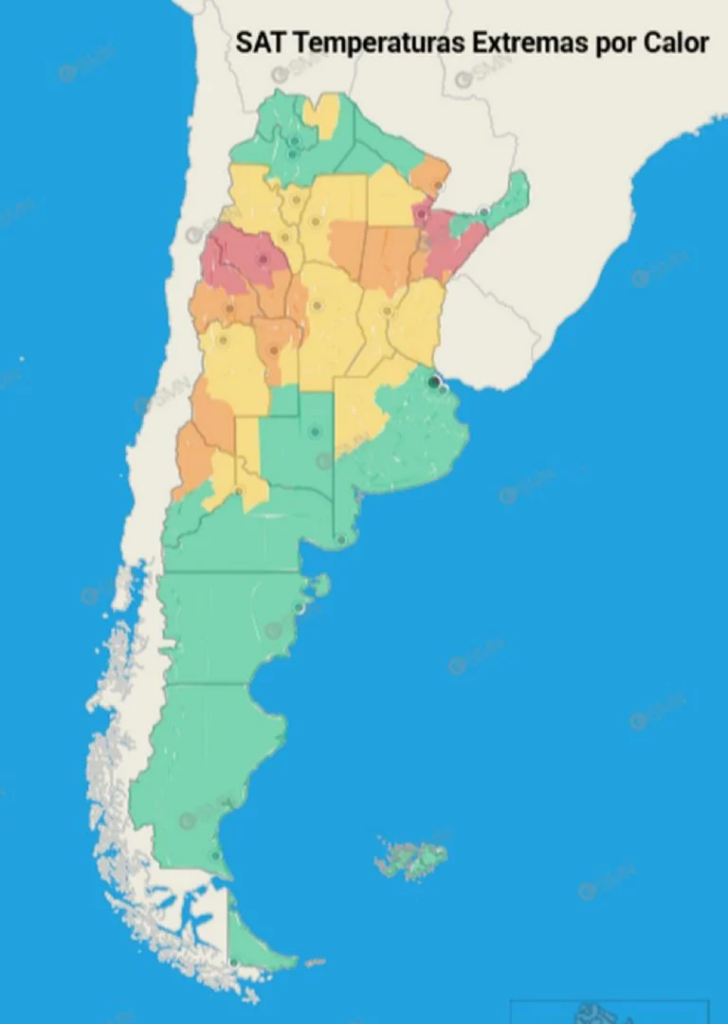 BUENOS AIRES.- En las últimas horas el Servicio Meteorológico Nacional (SMN), emitió alertas por temperaturas extremas, que afectan a gran parte del territorio argentino. En algunas provincias, como Santiago del Estero, se esperan máximas que podrían alcanzar los 44°C.