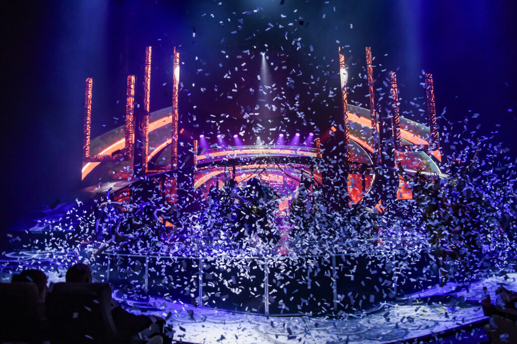 El elenco está integrado por 35 artistas internacionales seleccionados minuciosamente, quienes ejecutan coreografías y destrezas sobre una plataforma hidráulica de ingeniería avanzada, capaz de girar, elevarse y posicionarse verticalmente para crear visuales cinematográficas.