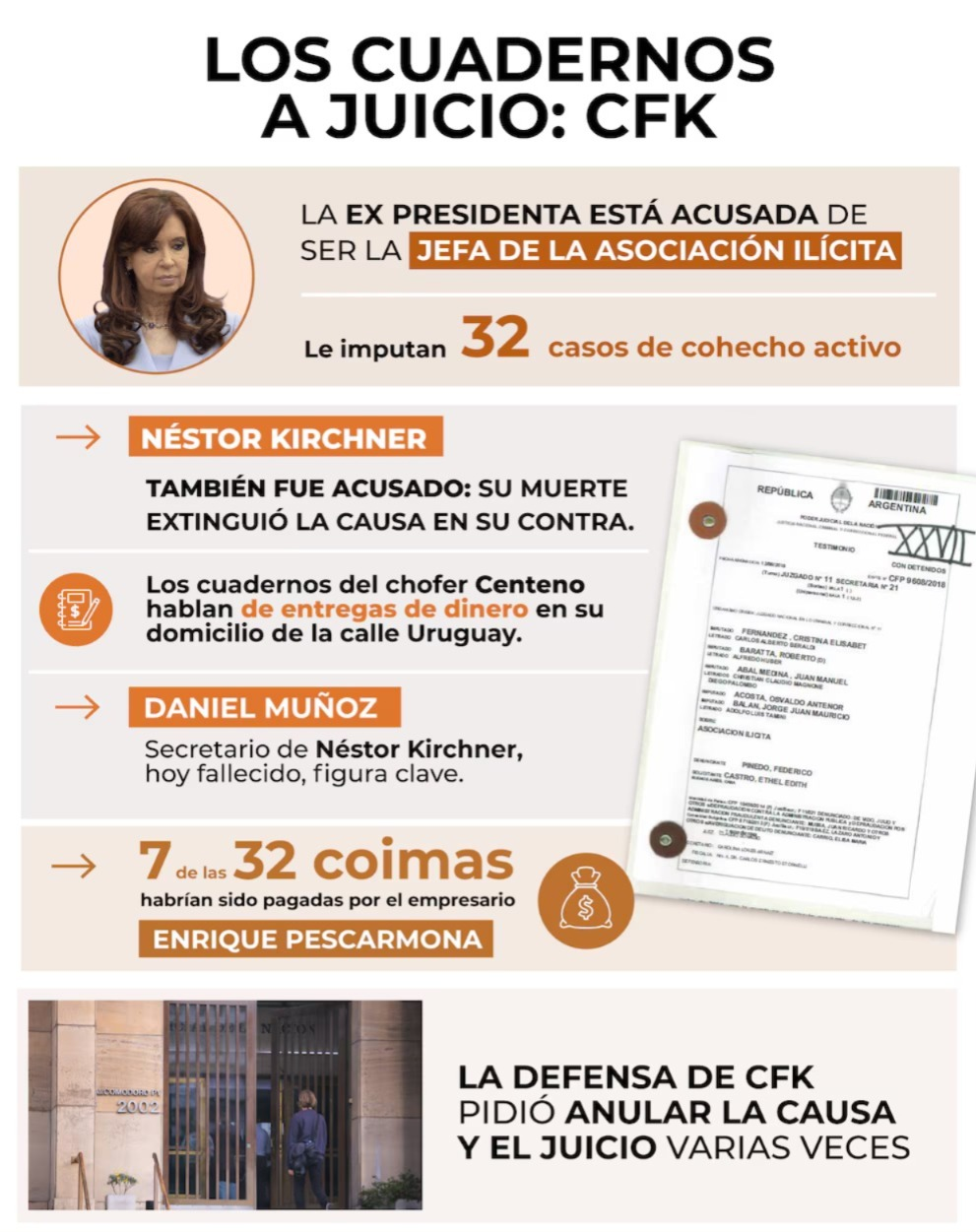 En noviembre la condena ex- presidente enfrentará al TOF N°7, está señalada como la presunta jefa de una asociación ilícita.