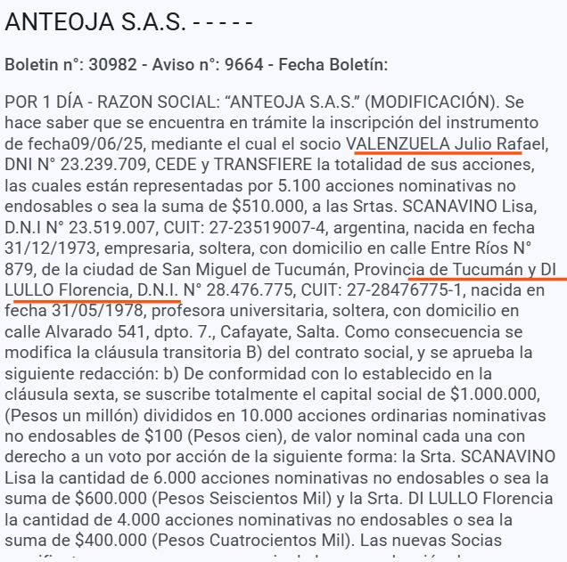 Los videos son contundentes, muestran a Valenzuela con un cigarrillo en la mano y un vehículo en el cual llegó al lugar ( una Ford Kuga, patente PNF 304, radicada en Amaicha del Valle) propiedad de Florencia Di Lullo , eventual colaboradora de el Tucumano y ex socia de Valenzuela en la empresa Anteojas S.A.S.