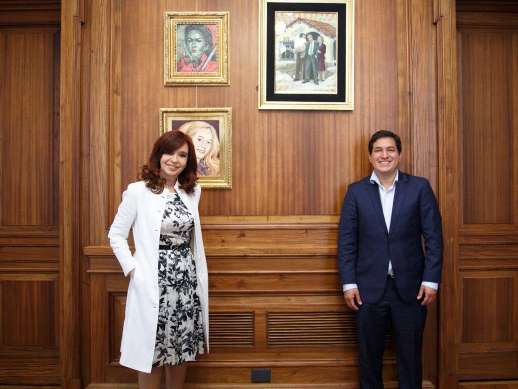 El viernes, Cristina Kirchner recibió en su despacho a Andrés Aráuz Galarza, candidato a presidente, afín al exmandatario Rafael Correa en Ecuador, y tuiteó: «Junto a Aráuz Galarza, hasta hoy proscripto candidato a Presidente de Ecuador por la alianza Unión por la Esperanza ¿En serio Lenín Moreno pretende que el resto del mundo crea que en el Ecuador hay democracia?».
