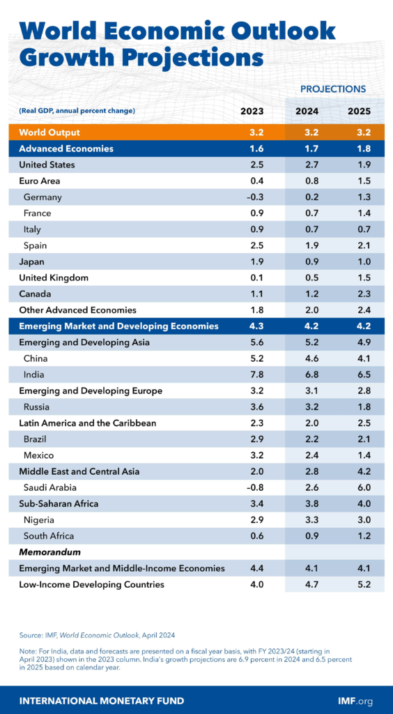 El FMI marcó en su informe: “Se proyecta que el crecimiento mundial, que se estima será de 3,2% en 2023, continúe igual en 2024 y 2025”. Sobre la Argentina específicamente, el Fondo aseveró que la economía cayó un 1,6% en 2023.
