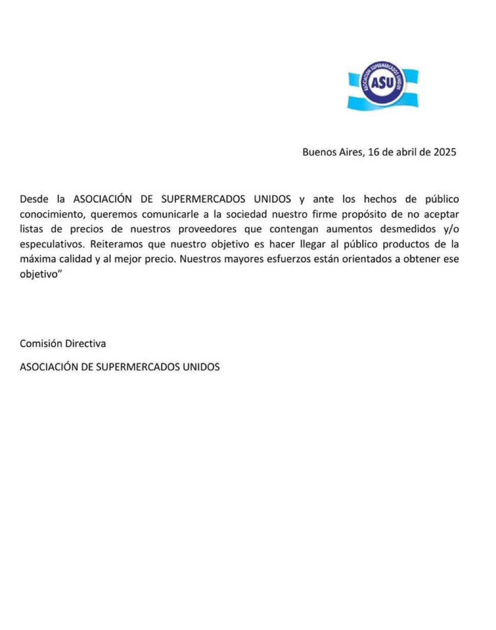 También felicitó a los supermercados por rechazar los aumentos entre el 9% y el 12%.