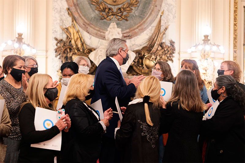 “Es un reconocimiento que el Estado les debía a las mujeres por sus tareas de cuidado, y es algo que no hemos hecho como sociedad”, les dijo el Presidente a las 29 mujeres de todo el país que hoy accedieron al beneficio de manera presencial en el Museo del Bicentenario y que luego compartieron una recorrida por la Casa Rosada.