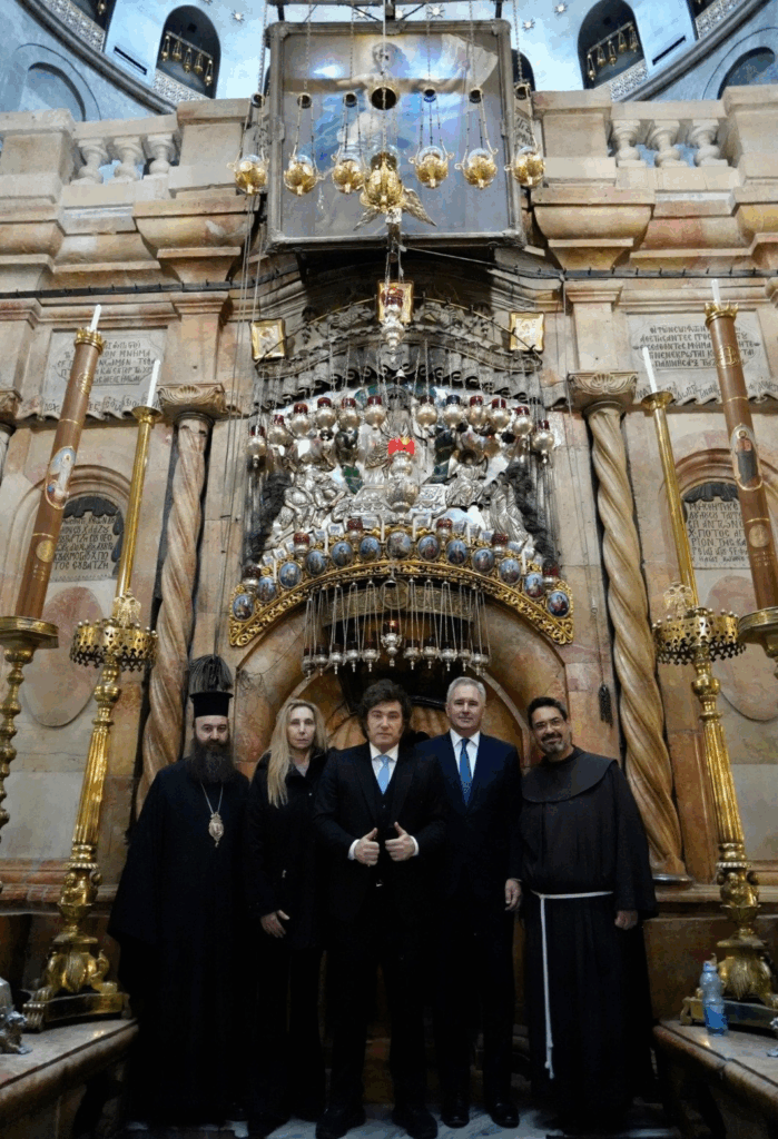 En el sitio más sagrado del cristianismo, el mandatario rezó y encendió una vela en memoria del fallecido Papa Francisco. Luego escribió en un libro de visitas un mensaje personal de respeto hacia la figura de Su Santidad.