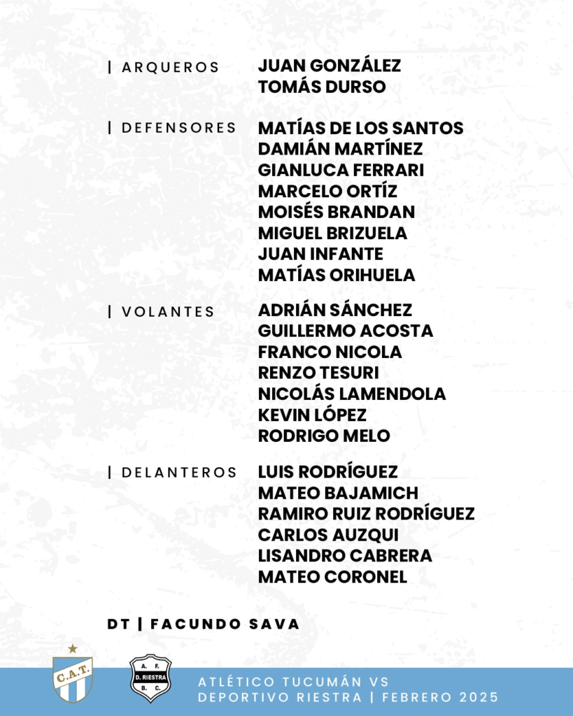 En la continuidad del Torneo Apertura 2025 de la Liga Profesional de Fútbol (LPF), esta noche Atlético Tucumán tendrá una «visita incomoda», será anfitrión de Deportivo Riestra. Disputarán un partido correspondiente a la Fecha 3 de la Zona B.