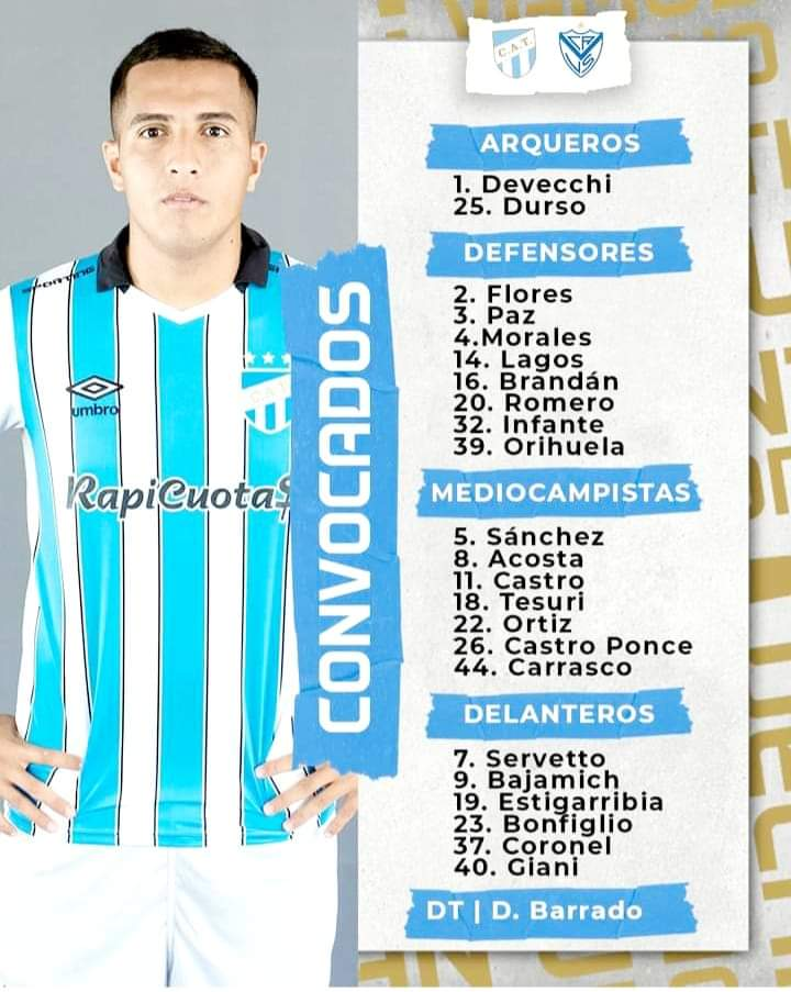 Atlético Tucumán: José Devecchi; Agustín Lagos, Francisco Flores, Nicolás Romero y Matías Orihuela; Renzo Tesuri, Guillermo Acosta, Adrián Sánchez y Mateo Bajamich; Mateo Coronel y Marcelo Estigarribia. DT: Diego Armando Barrado.