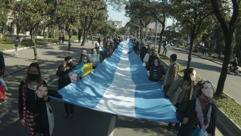 “Decidimos marchar cubriendo nuestros rostros con máscaras por temor a los matones del legislador Deiana, porque ya vimos lo que son capaces de hacer cuando amenazaron en la vía pública a una de las abogadas que nos asesoran, mostrándoles fotos de sus hijos mientras la intimaban a desistir de seguir adelante con los planteos judiciales”.