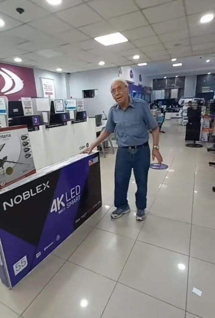 La foto se viralizó rápidamente, y la usuaria de Twitter @todaboluda hizo un pedido a Frávega, que solicitó ayuda para contactar al jubilado, que ya retiró su premio de la sucursal de Fravega.