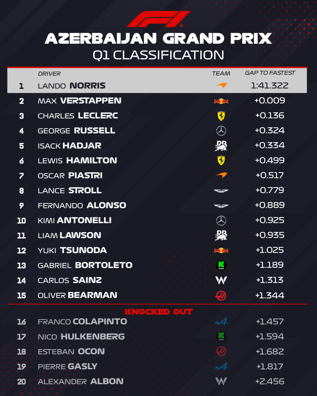 AZERBAIYAN.- Este sábado el piloto argentino Franco Colapinto quedó a un paso de superar la primera sesión clasificatoria del Gran Premio de Azerbaiyán, debido a que en el cierre de dicha tanda y cuando intentaba mantenerse en el grupo de los quince pilotos que acceden a las siguientes rondas cronometradas, se golpeó con el Alpine contra el muro de la curva 4 del circuito callejero de Bakú, y sus objetivos quedaron truncos para continuar en pista.