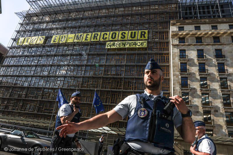 Con una marcha en medio de las organizaciones de Bruselas, sede de la Unión Europea, se ha manifestado la organización ecologista Greenpeace bajo el lema «Stop EU-Mercosur». Los ecologistas buscan evitar el riesgo de «una inundación de pesticidas» en el mercado de europeo, provenientes de Sudamérica, fruto del acuerdo comercial -aún por ratificar- entre la Unión Europea y el bloque formado por Argentina, Brasil, Paraguay y Uruguay.