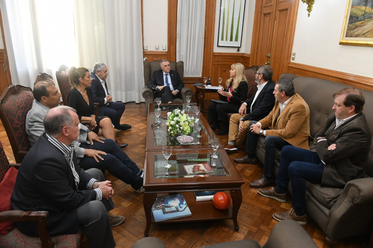 TUCUMAN.- El gobernador, Osvaldo Jaldo, recibió esta mañana en su despacho de Casa de Gobierno a la intendenta de San Miguel de Tucumán, Rossana Chahla, y los representantes de la Asociación de Empresarios del Transporte Automotor de Tucumán (AETAT).