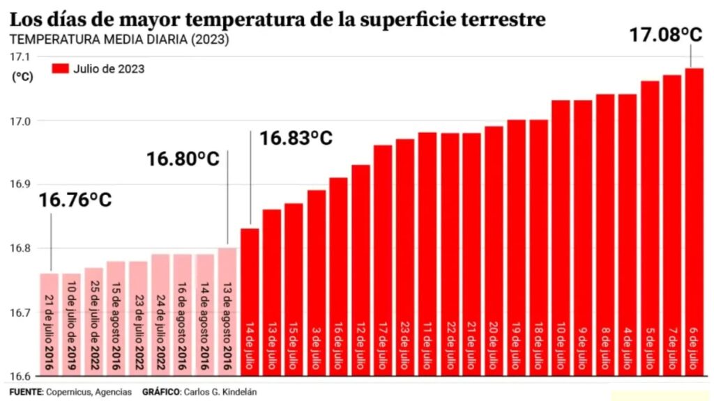 Lo confirmó el observatorio europeo Copernicus. batió el récord de ser el más caluroso, con 0,33 grados más que el récord de julio de 2019.