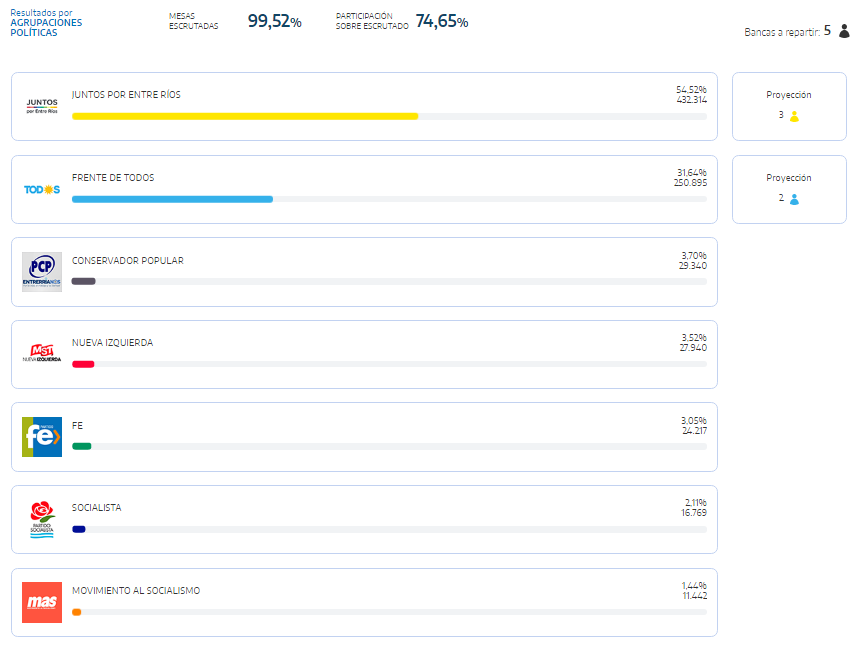 “Juntos por Entre Ríos” se impuso en 16 distritos de los 17 en que se divide el territorio entrerriano.