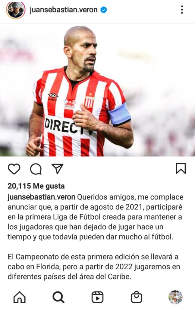La “Brujita”, de 46 años, lo comunicó en su cuenta de Instagram: «queridos amigos, me complace anunciar que, a partir de agosto de 2021, participaré en la primera Liga de Fútbol creada para mantener a los jugadores que han dejado de jugar hace un tiempo y que todavía pueden dar mucho al fútbol”.