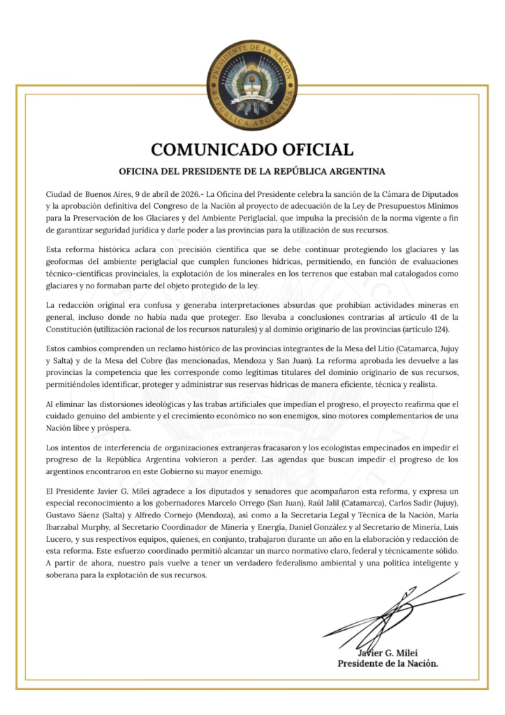 – Rol del Inventario Nacional de Glaciares: seguirá siendo una herramienta de consulta obligatoria, aunque sin limitar las decisiones de las provincias.