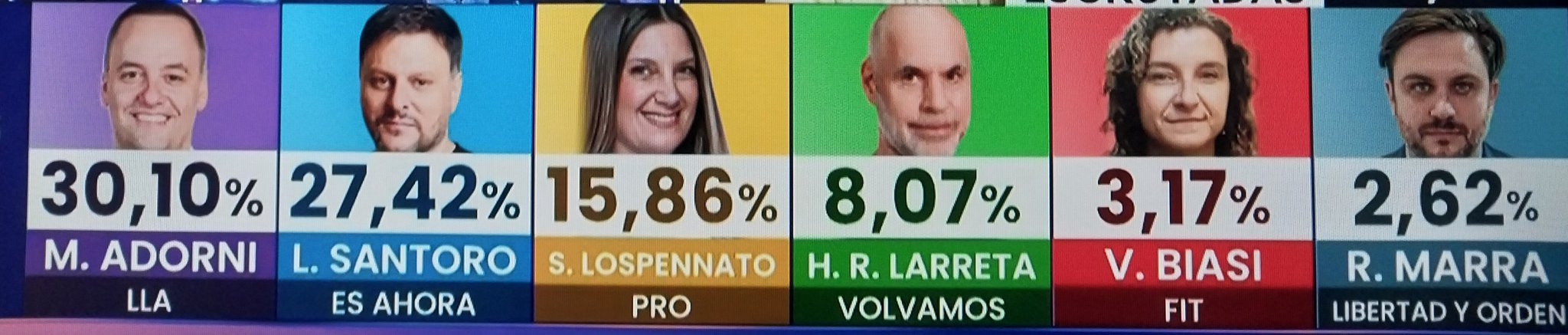 Con más del 98,47% de las mesas escrutadas, el candidato de La Libertad Avanza, Manuel Adorni, ganó la elección de legisladores porteños, con un 30,13% de los votos.