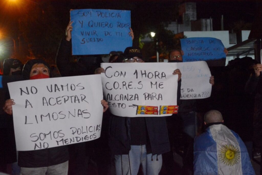 Los manifestantes mencionaron que entre las cosas absurdas que se abonan en el sueldo policial está el mantenimiento del uniforme, de 1.200 pesos. Con esa plata no compramos ni una zapatilla”, mencionó.