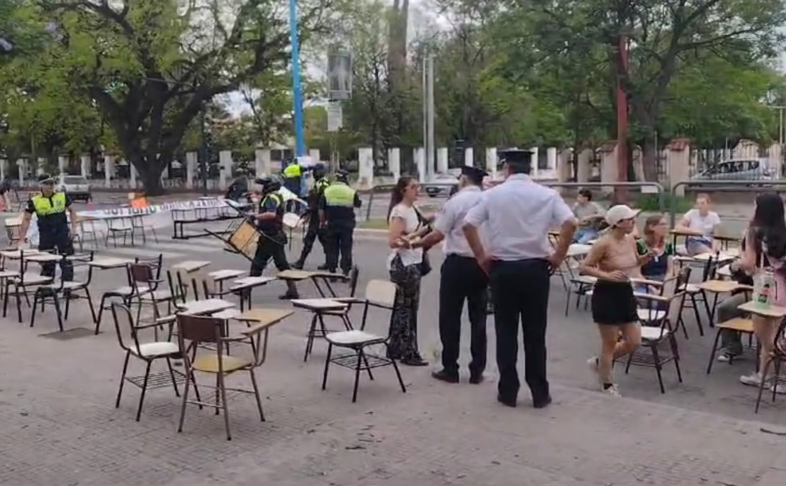 La manifestación pacífica, que tenía como objetivo visibilizar el reclamo estudiantil, fue interrumpida cuando las fuerzas policiales se presentaron en el lugar y levantaron las sillas, instando a los alumnos a desalojar la vía pública. Según declaraciones de un oficial, la acción se justificó afirmando que el protocolo de la ministra de seguridad, Patricia Bullrich, está activo en la Provincia, por tanto, no está permitido cortar la calle.