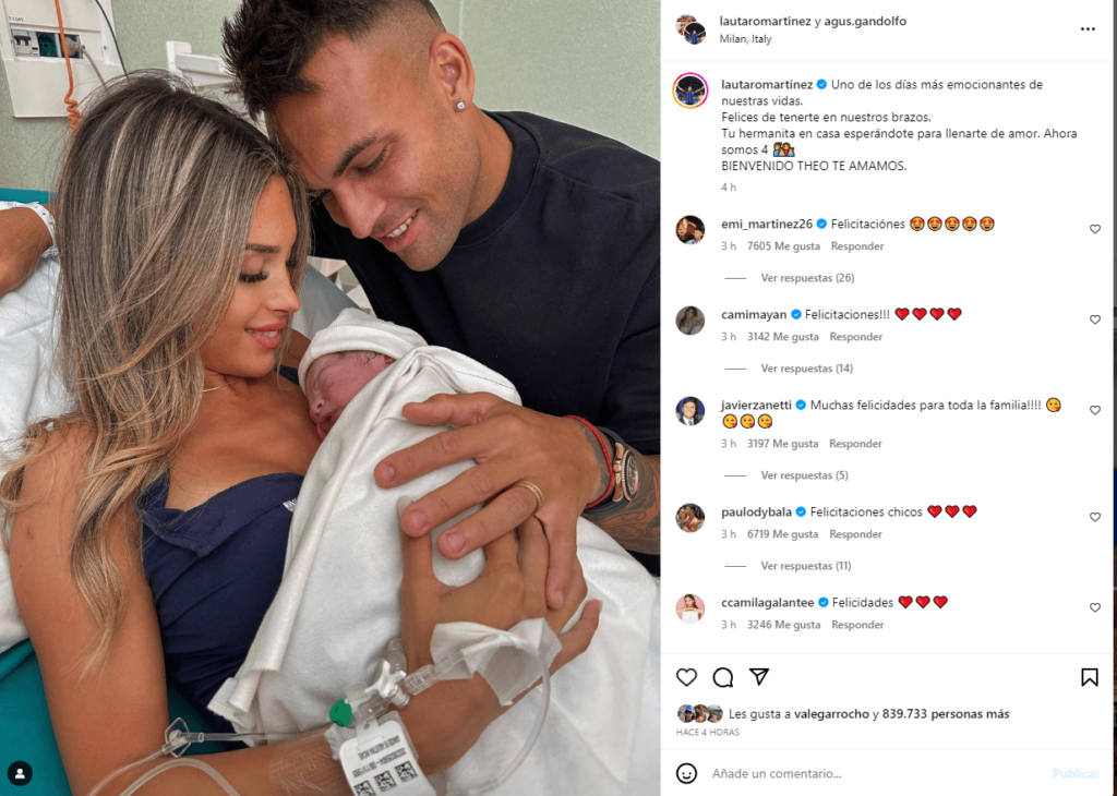 Con un posteo de Instagram, Lautaro Martínez y Agustina Gandolfo compartieron la noticia de la llegada de su segundo hijo, Theo. La influencer y el futbolista también son padres de Nina, de dos años y además recientemente se casaron en una lujosa ceremonia en Italia.