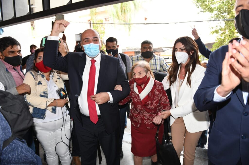 Manzur llegó a la sede del PJ acompañado por la dirigente histórica del peronismo, Teresita Felipe de Heredia (91 años), compañía que fue esencial para que la reunión pudiera concretarse. El gobernador fue cuestionado por haber hecho que la eterna dirigente fuera a la sede partidaria en momentos de pandemia.