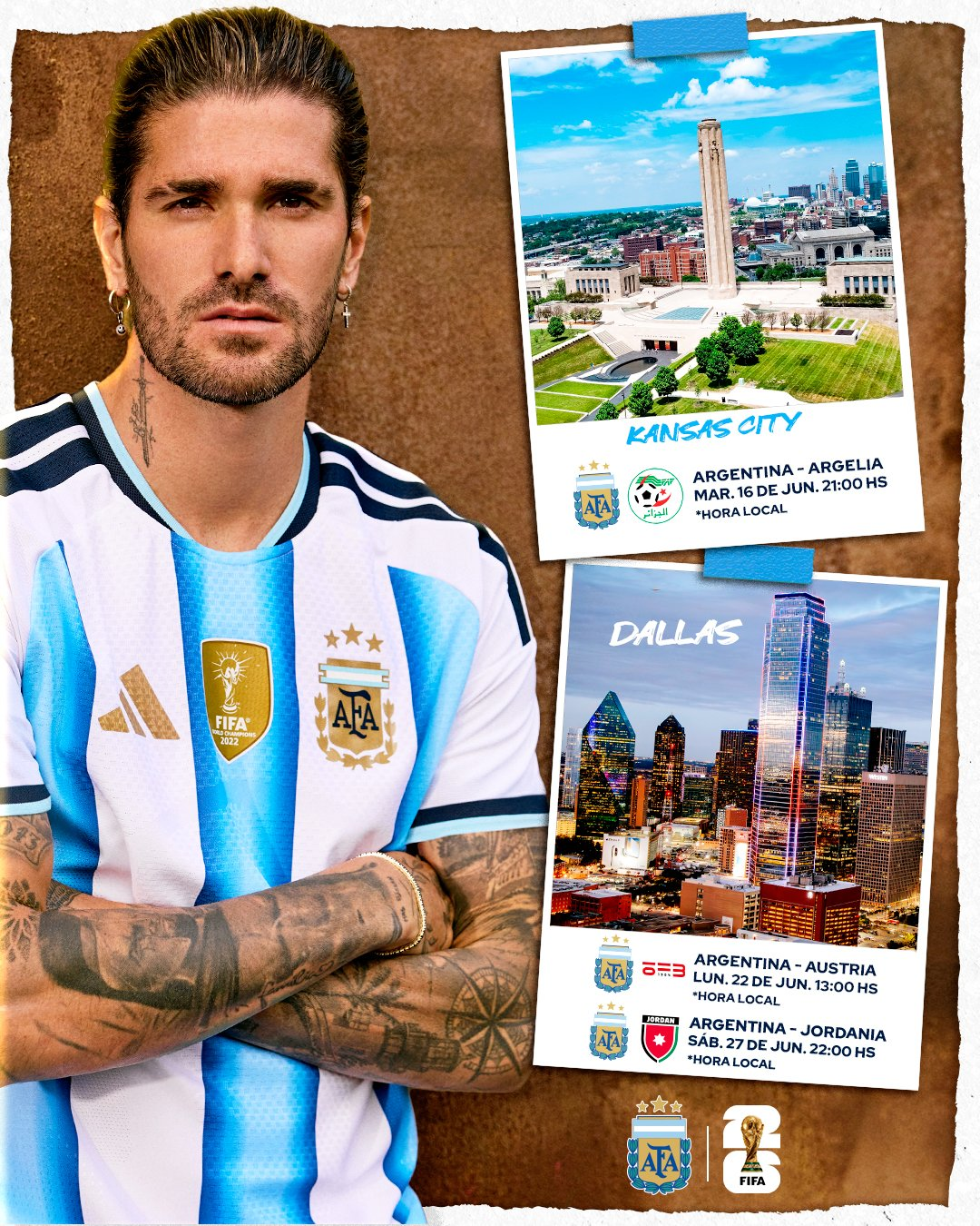 - Argentina vs. Argelia: martes 16 de junio a las 22 horas (ARG) en el estadio Arrowhead de Kansas City, Misuri.