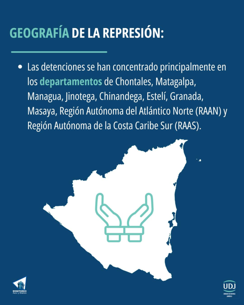 Las detenciones se concentran en Chontales, Matagalpa, Managua, Jinotega, Chinandega, Estelí, Granada, Masaya y las regiones del Caribe Norte y Sur.