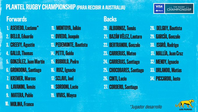 BUENOS AIRES.- En la noche del viernes la cuenta oficial del Los Pumas en la red social X, confirmó al último de los convocados para las fechas 3 y 4 del Rugby Championship. El santiagueño Pedro Delgado, jugador de Old Lions.