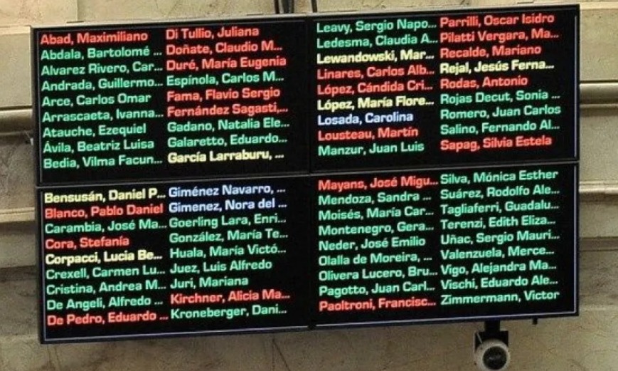 Con el apoyo de sectores aliados y algunos senadores del bloque de Unión por la Patria (UxP), el Gobierno logró sancionar el proyecto de suspensión, con 43 votos afirmativos, 20 negativos y 6 abstenciones. De esta manera el gobierno de Javier Milei, obtuvo nuevamente un gran triunfo parlamentario.