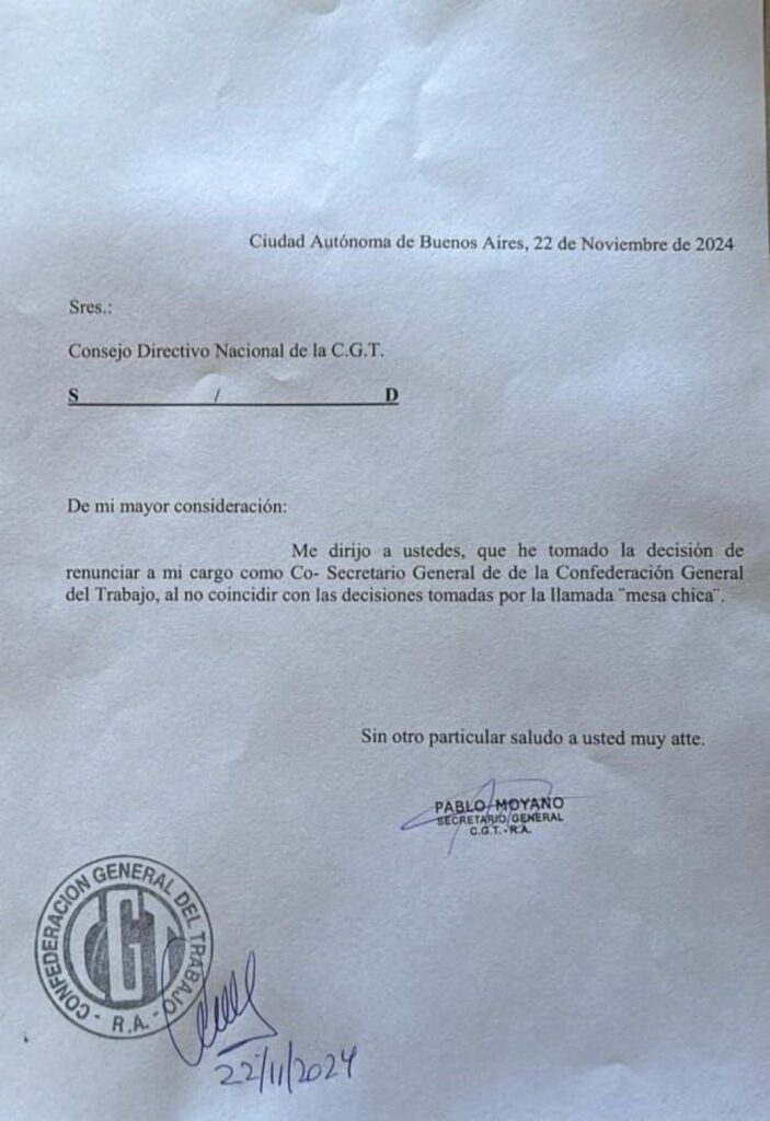 Pero al percibir que en los dirigentes del resto de la CGT no había ánimos de adherir a esa iniciativa, Pablo Moyano decidió dar un paso al costado y dejar su cargo de cosecretario general de la central.