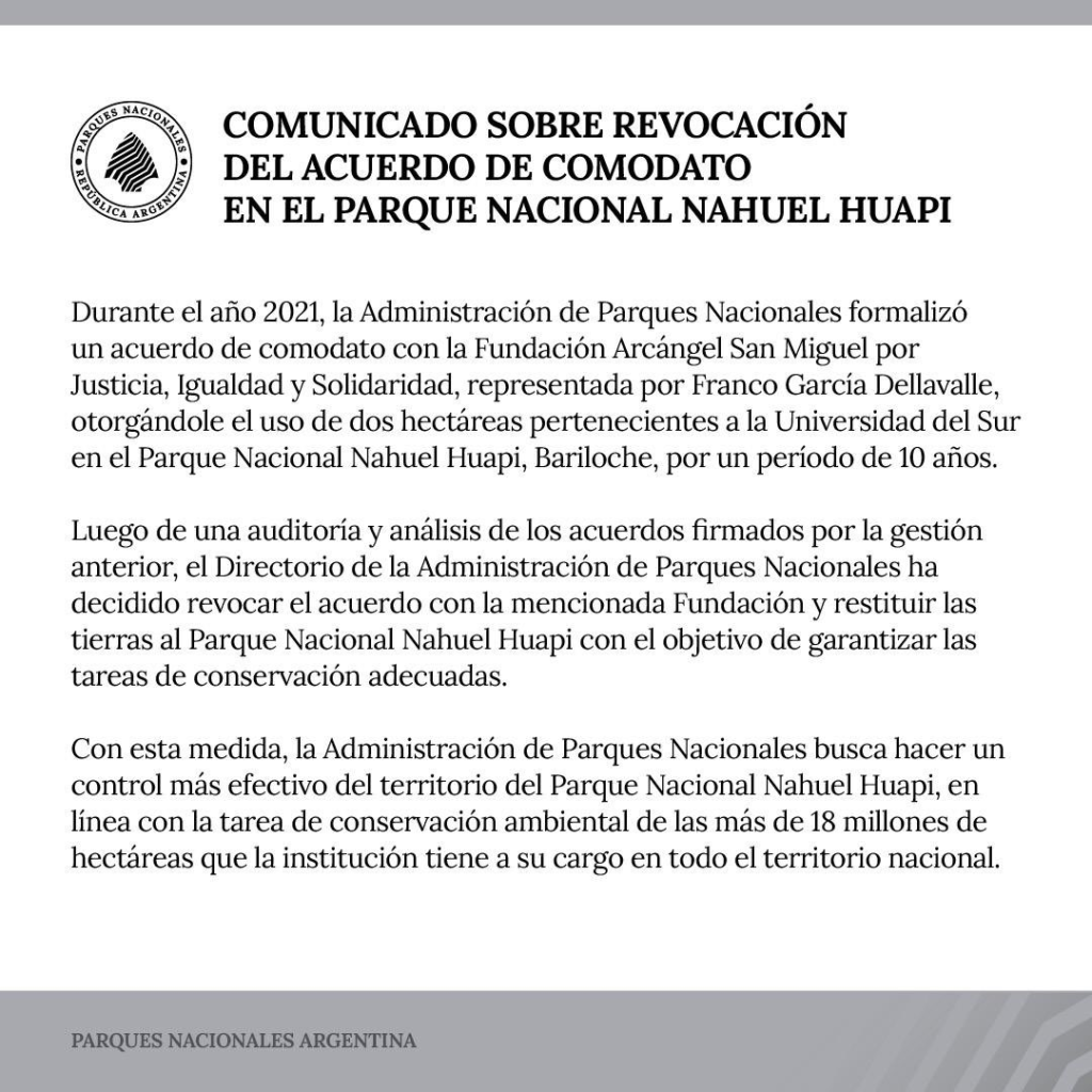 RÍO NEGRO.- Parques Nacionales recuperó dos hectáreas de tierras, en Bariloche, que el Gobierno de Alberto Fernández había cedido en el 2021 a una organización política liderado por un abogado allegado al dirigente Juan Grabois.