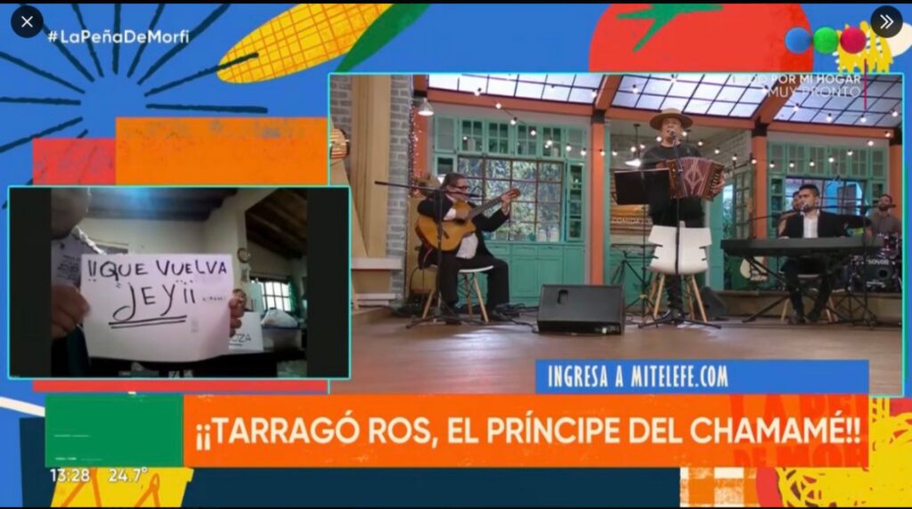 BUENOS AIRES.- El domingo, durante la transmisión de La Peña de Morfi, se atravesó un incómodo momento cuando un televidente mostró al aire un cartel que pedía el regreso de Jey Mammón al programa. La imagen fue removida abruptamente pero no pasó desapercibido en las redes sociales y en los medios.