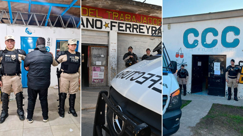 En los 24 allanamientos que habían sido ordenados el año pasado por el juez federal de Quilmes, Luis Armella, fue apresado un hombre por portación ilegal de arma de fuego, y en varios puntos se encontraron pequeñas cantidades de marihuana. El depósito con mayor volumen de alimentos vencidos, pertenecía al Movimiento Teresa Rodríguez, ubicado en Florencio Varela, en cuya fachada podía leerse la inscripción: “Si el hambre es ley, la rebelión es justicia”.
