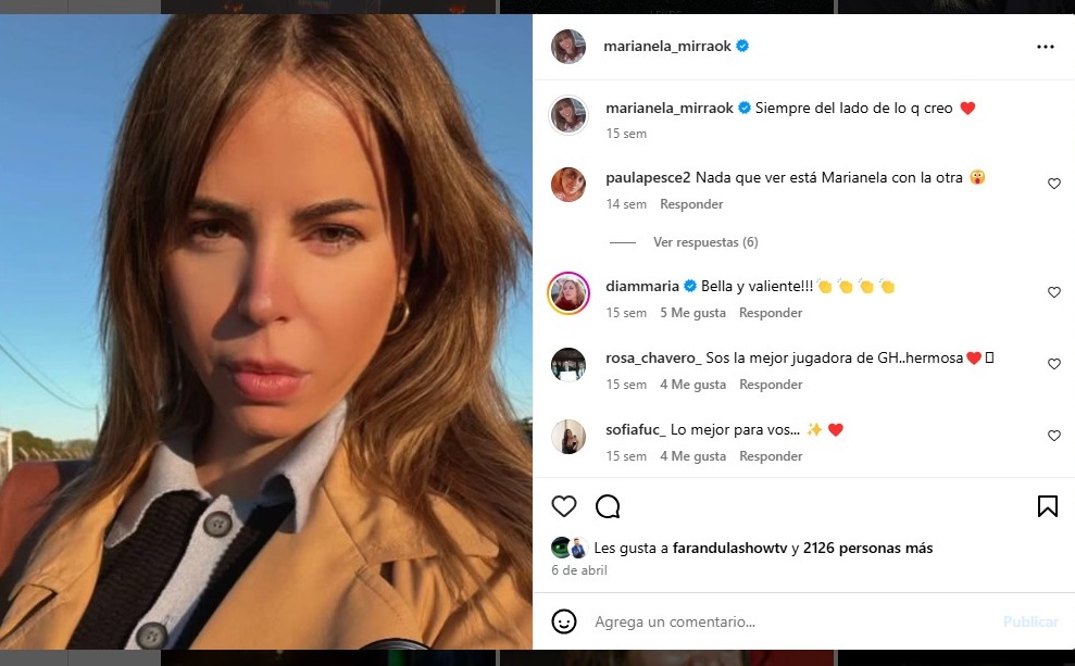 BUENOS AIRES.- Un simple posteo en una historia de Instagram volvió a encender los rumores en torno a Marianela Mirra, la influencer tucumana que saltó a la fama tras ganar Gran Hermano y cuya vida privada no deja de alimentar el interés del mundo del espectáculo… y de la política.