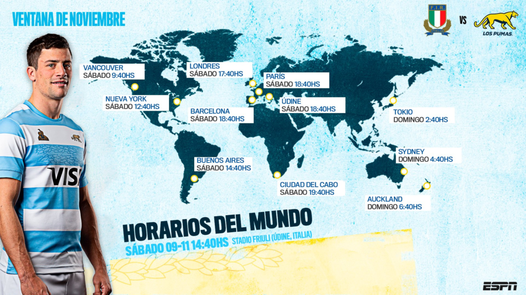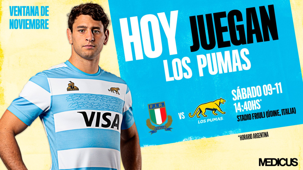 ITALIA.- En la siesta de éste sábado la «guinda» se pone nuevamente en juego para Los Pumas. Cuando el reloj marque las 14:40, la Selección Argentina de rugby, enfrentará a su par de Italia, en el Stadio Friuli. Será el primer partido de la «ventana de noviembre»