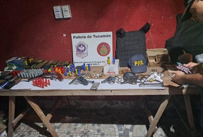 TUCUMAN.- La Policía de Tucumán, por medio de la Dirección General de Drogas Peligrosas (Digedrop) y sus unidades, la División Drogas Peligrosas (Didrop) Capital y la Didrop Norte, secuestró una gran cantidad de drogas, armas, chalecos antibalas, dinero en efectivo y dejó el saldo de varias personas aprehendidas.