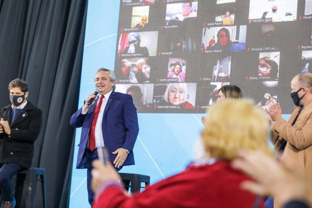 El acto se hizo en la localidad bonaerense de Lomas de Zamora, donde Fernández agregó: “Tenemos que trabajar mucho para frenar a los que especulan con los precios y nos preocupa particularmente la situación de los jubilados y de las jubiladas porque no queremos que sean la variable de ajuste”.